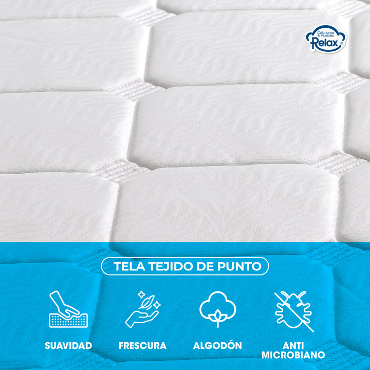 Colchón Relax Tamaño Queen High Plus Resortado Intermedio 160x190x24cm.