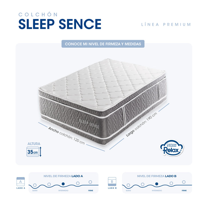 Colchon Sleep Sense Semidoble 120x190x35cm Firmeza intermedia Confortable Espuma Soft Dream Resortado Tela Con Tratamiento Hipoalergénico Altura Premium