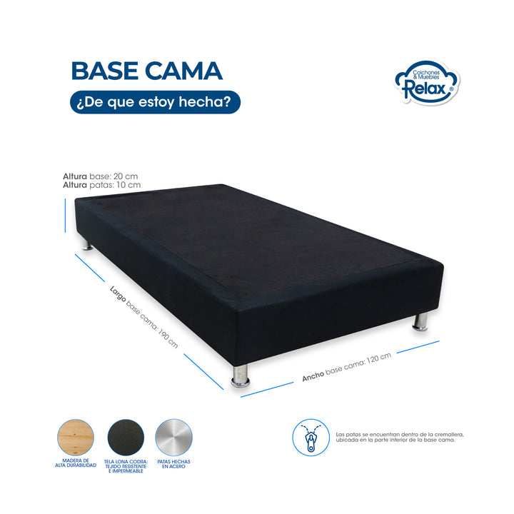Combo Colchón Relax Tamaño Semidoble High Plus Resortado Intermedio + Base Cama 100% Madera Natural 120x190x24cm.